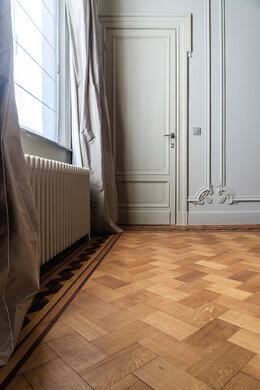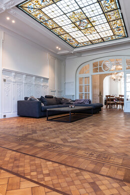 Ursprünglich bestand dieses schöne Haus im belgischen Ronse aus den 1920er Jahren aus zwei separaten Bauten. Die Eigentümer beschlossen, die ursprünglichen Strukturen zu erhalten, um daraus ein großes Haus zu machen. Neben den authentischen Elementen wollten sie auch die natürliche Optik der Holzböden bewahren. Mit dieser Vision begann Che Polfliet von der Firma C-Parket, die Holzböden mit Hilfe von Rubio Monocoat Pre-Aging und Oil Plus 2C aufzufrischen und zu renovieren.