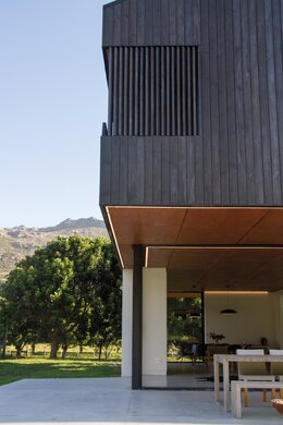 WoodCream wurde für die Außenverkleidung dieses atemberaubenden Domizils in Hout Bay, Kapstadt, ausgewählt, da das Finish das Aussehen von Shou Sugi Ban nachahmt (eine alte Technik aus Japan zur Holzverbrennung). Das Haus wurde von Musa Renovations and Projects nach Entwürfen von Salt Architects gebaut. Die Besitzer wollten eine Verkleidung in einem modernen, jedoch nicht zu „glatten“ Look, mit einem Finish ohne starken Glanz. Mit WoodCream wurde ein natürliches Erscheinungsbild geschaffen, das die Komplexität der natürlichen Maserung und des verwitterten Looks unterstreicht. Die Entscheidung fiel nicht nur wegen der Ästhetik auf WoodCream, sondern auch, weil es einfach in Anwendung und Pflege ist.