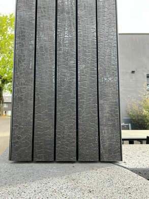 Die Terrasse dieses Restaurants erhält durch die Verkleidung des Lagerraums ein besonders frisches Aussehen. Dank der WoodCream Bold Black #7 passt sie perfekt in den Garten!